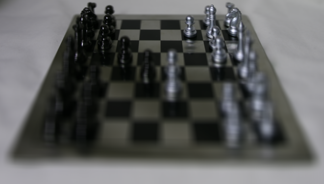 This is a light field image of a chess board scene, obtained from (The (New) Stanford Light Field Archive — Lightfield.stanford.edu, n.d.) . This image file is formatted in the same way as images captured by a plenoptic camera.